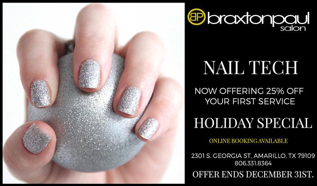 Braxton Paul Salon is offering 25% off your first nail service. Call 806-331-8364 to schedule an appointment or schedule online at braxtonpaulsalon.com.